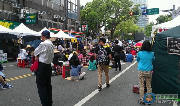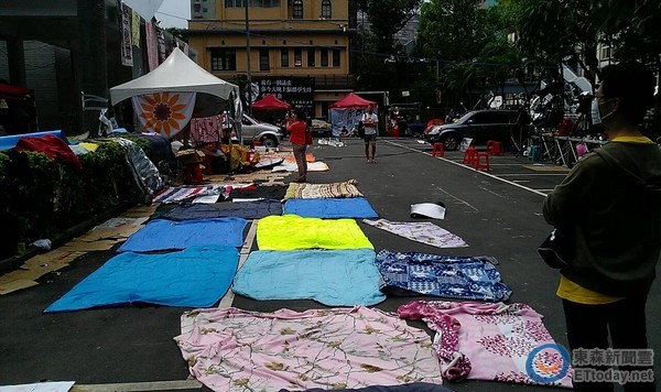 昨日,學(xué)生及民眾集結(jié)凱道反服貿(mào),人潮從凱道蔓延至中山南路、濟(jì)南路、青島東路,反服貿(mào)學(xué)生團(tuán)體總指揮林飛帆30日晚間號(hào)召大家排班守“立法院”,不過(guò)31日下午議場(chǎng)外群眾人數(shù)減少,“立法院”青島東路側(cè)停車場(chǎng)成為“曬被場(chǎng)”。