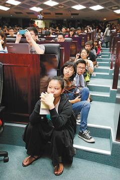 中國(guó)臺(tái)灣網(wǎng)4月1日消息 據(jù)臺(tái)灣《聯(lián)合報(bào)》報(bào)道,臺(tái)當(dāng)局“經(jīng)濟(jì)部”服貿(mào)校園講座列車昨天駛進(jìn)首站臺(tái)灣政大,由“經(jīng)濟(jì)部次長(zhǎng)”杜紫軍先發(fā),近三百名師生涌入會(huì)場(chǎng)。校方表示,上周開放報(bào)名就“秒殺”,搶手程度不輸路跑比賽。由于座位有限,不少學(xué)生直接坐在走道上聽講。(中國(guó)臺(tái)灣網(wǎng) 朱煉)