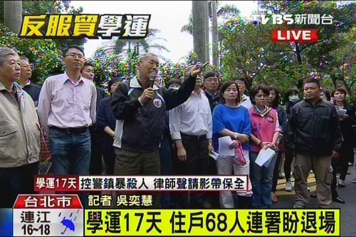 附近住戶68人聯(lián)署期盼學運能夠退場。(圖片來自臺媒)