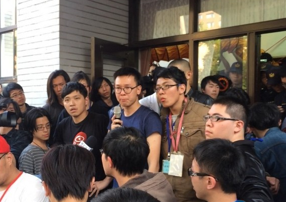 3月24日凌晨,反服貿(mào)人群攻占“行政院”。(臺媒圖)