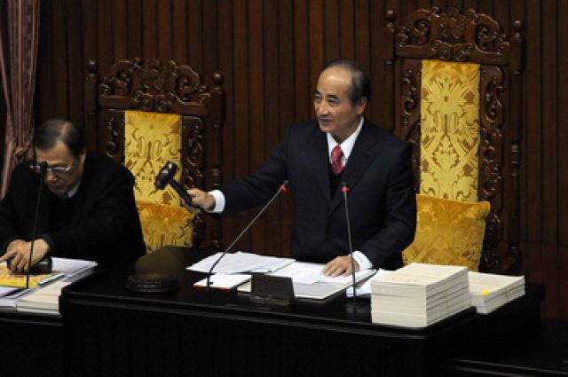 “立法院長”王金平之前“三讀”通過“法案”時敲槌畫面。(圖片來自臺媒)
