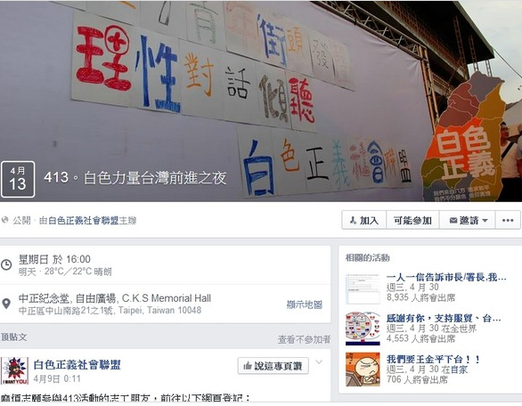白色正義社會(huì)聯(lián)盟發(fā)起“白色力量臺(tái)灣前進(jìn)之夜”活動(dòng)。(臺(tái)媒圖)