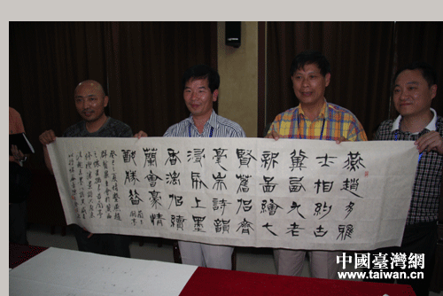 陳志聲在情系燕趙文化聯(lián)誼活動(dòng)中進(jìn)行現(xiàn)場書法創(chuàng)作(中國臺(tái)灣網(wǎng)-蕪?fù)瑪z)