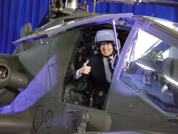 據(jù)報(bào)道,臺灣陸軍向美國購買的30架阿帕奇AH-64E攻擊直升機(jī),首批6架在去年11月運(yùn)抵臺灣。馬英九在接機(jī)酒會親自登上阿帕奇,并戴上特制的飛行頭盔,對外比出大大的“贊”字,臉上還滿是笑容。