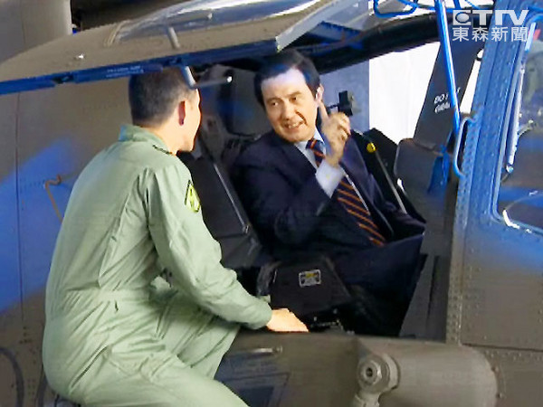 馬英九試乘阿帕奇直升機(jī)。(圖片取自臺媒)