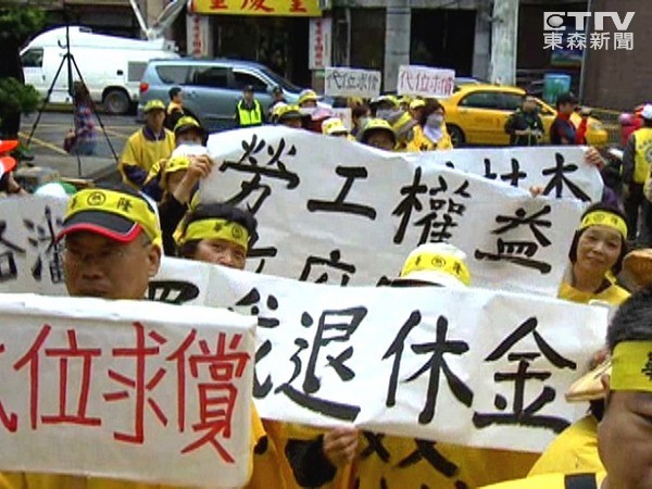 桃園縣總工會(huì)赴臺(tái)“勞動(dòng)部”抗議,要求縮短工時(shí)。(圖片來自臺(tái)媒)