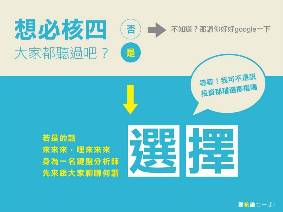 中國臺(tái)灣網(wǎng)5月2日消息 據(jù)臺(tái)灣今日新聞網(wǎng)報(bào)道,因反服貿(mào)學(xué)運(yùn)的關(guān)系,網(wǎng)絡(luò)上充斥著各種反服貿(mào)懶人包,當(dāng)局才發(fā)現(xiàn)在溝通方面出了非常大的問題,尋求方式積極改善,此次,“經(jīng)濟(jì)部”推出與核四相關(guān)的圖片懶人包“要核誰在一起”,難得在網(wǎng)絡(luò)上獲得好評(píng)。