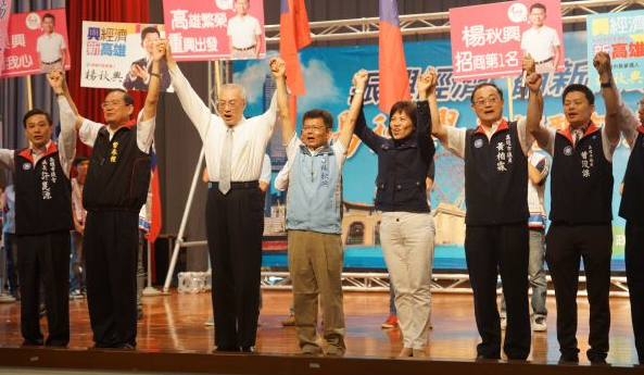 楊秋興(中)表示,經(jīng)濟(jì)自由示范區(qū)讓高雄有發(fā)展機(jī)會(huì)。(圖片來自臺(tái)媒)