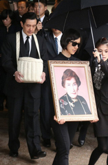 馬英九捧骨灰送母親最后一程。馬英九母親秦厚修2日病逝,5日上午在臺(tái)北市第二殯儀館大殮、家祭及火化,馬英九(前左)手捧骨灰,女兒馬唯中(右2)手捧遺照,將送至富德公墓。(圖片來(lái)源:臺(tái)灣“中央社”)