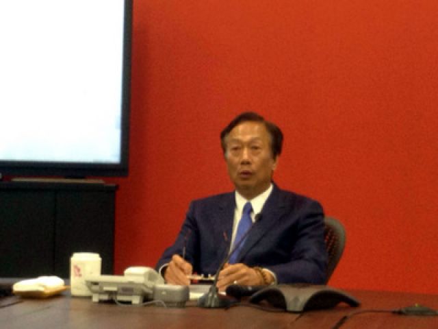 臺灣鴻海董事長郭臺銘6日說,他譴責“綠委”陳歐珀在馬英九家祭現(xiàn)場鬧場的行為,并提出呼吁,要求政治人物必須表態(tài)支持或反對這種違背道德的行為。(圖片來源:臺灣“中央社”)