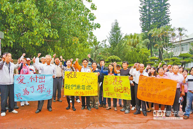 近百人到水林初中慰留,強(qiáng)調(diào)悲劇令人心痛,但好人才不應(yīng)因此離去。(圖片來源:臺灣中時電子報)