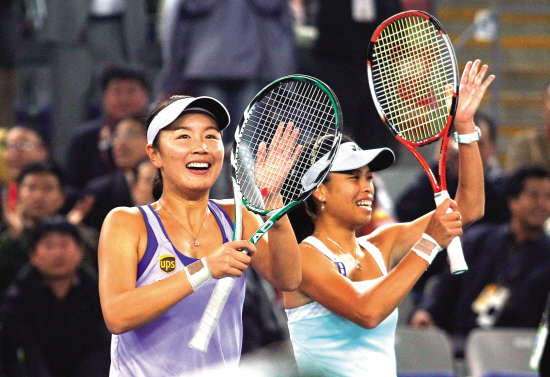 彭帥(左)和謝淑薇(右)在最新WTA官方公布的網(wǎng)球排名升上女子雙打世界第一。(圖片來自網(wǎng)絡(luò))