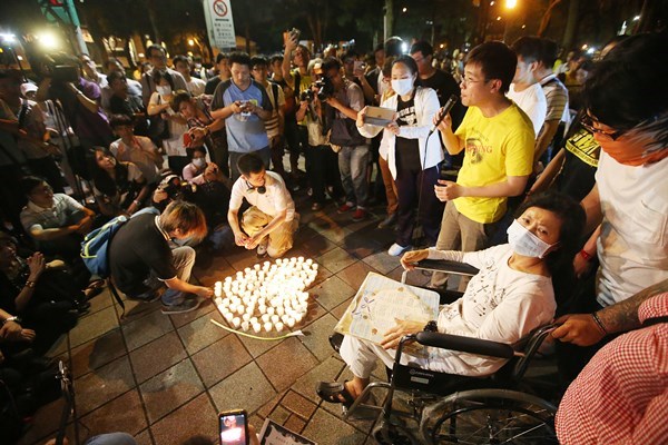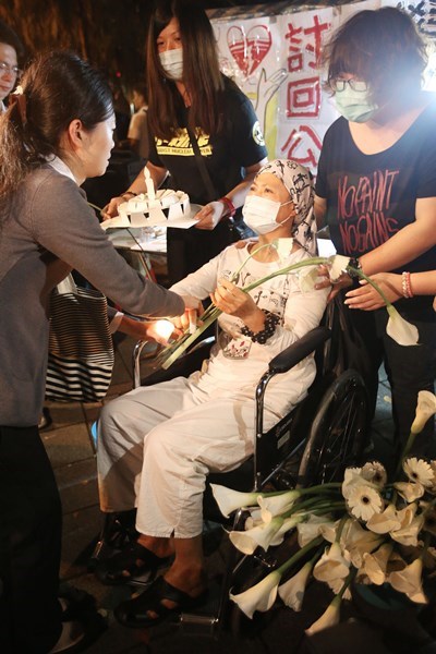 上百名民眾準(zhǔn)備了鮮花和紙蛋糕聲援蔡媽媽。(圖片來自臺(tái)媒)