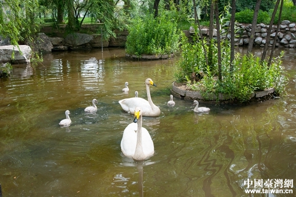 中國(guó)臺(tái)灣網(wǎng)5月14日北京消息 5月14日上午,中國(guó)野生動(dòng)物保護(hù)協(xié)會(huì)總工程師宋慧剛、國(guó)家環(huán)保部生態(tài)評(píng)估專家王增年教授在紫玉山莊總經(jīng)理黃紫玉的陪同下,共同參觀紫玉山莊,并詳細(xì)了解了在這里剛孵化出來(lái)的六只白天鵝。此次在北京孵化的白天鵝是華北首次實(shí)現(xiàn)白天鵝放養(yǎng)狀態(tài)下的自然繁殖。