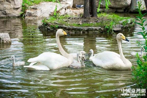 小天鵝和父母快樂(lè)嬉戲(中國(guó)臺(tái)灣網(wǎng) 宣玲玲 攝)