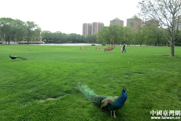 自由自在的孔雀與梅花鹿(中國(guó)臺(tái)灣網(wǎng) 宣玲玲 攝)