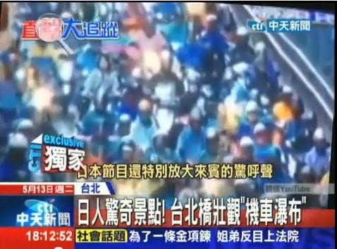 臺北摩托車瀑布令日本電視節(jié)目嘉賓當場傻眼。(圖)