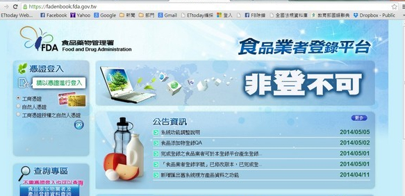 臺灣歷經(jīng)塑化劑、混充油等食安問題之后,“食藥署”今年4月24日公告“食品添加物業(yè)者應(yīng)辦理登錄”,并要求食品添加物制造、加工或輸入業(yè)者,自2014年5月1日起,應(yīng)完成登錄,始得制造、加工或輸入。