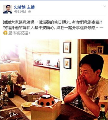 4月過生日時,史哲維在臉書和粉絲團表達感動心情:“有你們我很幸福!”且使用“覺得被祝!钡奶焓构猸h(huán)小圖,9日和妻子施明黎出席化妝晚會時說:“周五夜的面具趴,我們都需要放松一下。”文末選用“覺得充滿希望”圖示,隔周竟然就陳尸家中。