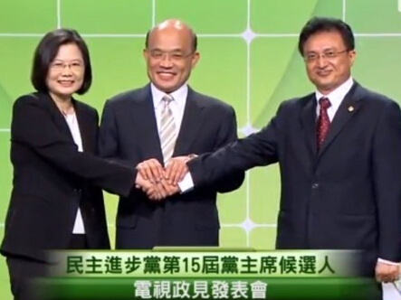 中國(guó)臺(tái)灣網(wǎng)5月19日消息 據(jù)臺(tái)灣“東森新聞”報(bào)道,民進(jìn)黨今(18)日舉辦黨主席改選“電視政見發(fā)表會(huì)”,由2位候選人蔡英文、郭泰麟進(jìn)行發(fā)表! ∽越衲4月民進(jìn)黨主席蘇貞昌、前“行政院長(zhǎng)”謝長(zhǎng)廷宣布退出本屆黨主席選舉,蔡英文隨后表態(tài)參選到底,民進(jìn)黨黨主席之爭(zhēng)已無懸念。