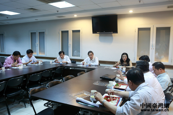 張志軍與臺商一起吃便當。(中國臺灣網(wǎng) 于斯文 攝)