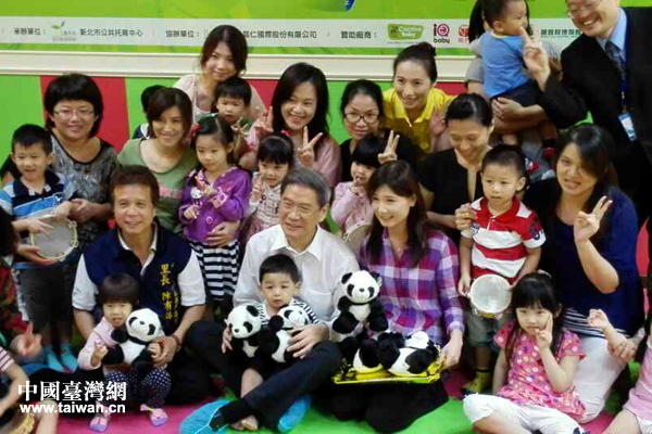張志軍與新北市厚德里托育中心的孩子們?cè)谝黄稹#ㄖ袊?guó)臺(tái)灣網(wǎng) 于斯文 攝)