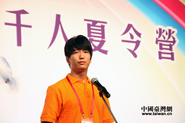 來自臺(tái)灣體育大學(xué)的陳甫同學(xué)向營員們分享來到大陸的感悟。(中國臺(tái)灣網(wǎng) 李徽 攝)