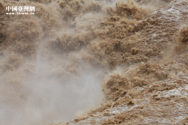 黃河壺口瀑布之水如千軍萬(wàn)馬,奔騰怒吼,以翻江倒海之勢(shì),飛流而下,巨瀾翻江倒海,狂飆驚濤拍岸。(中國(guó)臺(tái)灣網(wǎng) 蕪?fù)?攝)