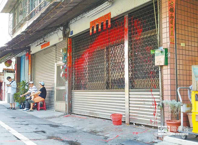 餿水油風暴主嫌郭烈成被收押,他位于屏東市的住家6日遭人潑漆、砸雞蛋。來源:臺灣《中國時報》