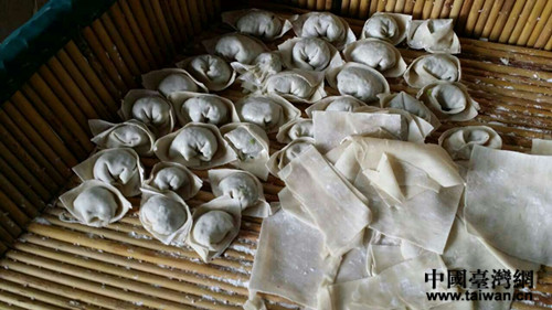 全家人坐在一起包餃子。(中國臺灣網(wǎng) 曾洪璽 攝)