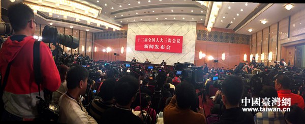 第十二屆全國(guó)人大第三次會(huì)議4日舉行首場(chǎng)新聞發(fā)布會(huì),圖為新聞發(fā)布會(huì)現(xiàn)場(chǎng)記者爆棚(中國(guó)臺(tái)灣網(wǎng) 高斯斯 攝)
