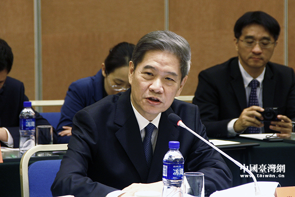 國務(wù)院臺辦主任張志軍18日在北京與來訪的臺灣縣市長參訪團(tuán)舉行座談。(中國臺灣網(wǎng) 李天祺 攝)