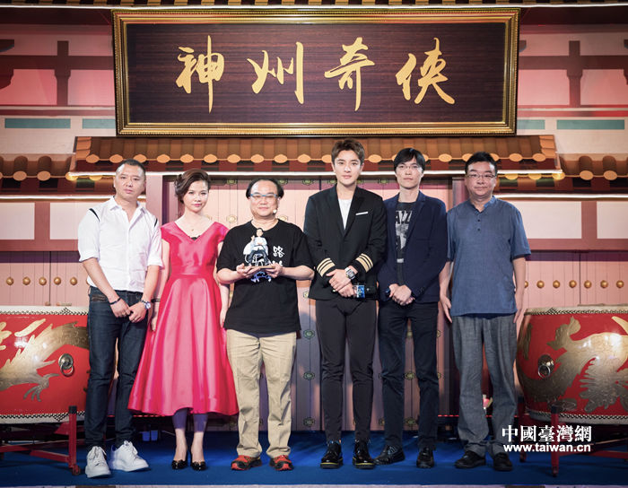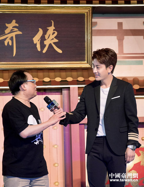 武俠宗師溫瑞安、當(dāng)紅實力派偶像賈乃亮出席《神州奇?zhèn)b》影游聯(lián)動發(fā)布會。(中國臺灣網(wǎng) 高斯斯 攝)