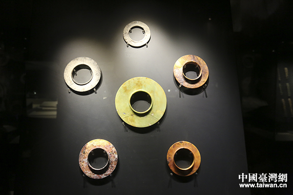 目前中國發(fā)現(xiàn)的3000年前保存最完整的金面具。(中國臺(tái)灣網(wǎng) 李寧 攝)
