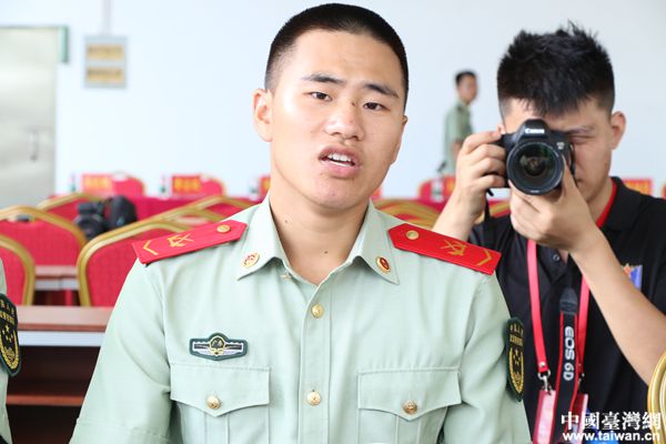 和平中隊(duì)二班班長(zhǎng)胡賢威向記者講述強(qiáng)軍故事。(中國(guó)臺(tái)灣網(wǎng) 尹賽楠 攝)