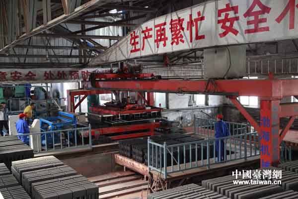 天合工人們正在制磚。(中國臺灣網(wǎng) 王錫朋 攝)