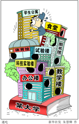 近年來,各地高校相繼迎來大發(fā)展、大投入時期,一些高校物資采購和后勤服務(wù)資金動輒上億元,大學(xué)城的建設(shè)投資更高達數(shù)十億元。一些主管基建的高校官員與開發(fā)商、承建商互相利用,結(jié)成利益同盟,共同侵蝕學(xué);椖抠M用,高校腐敗問題在這一領(lǐng)域集中顯現(xiàn)。