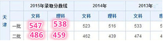 2015天津高考本科一批、本科二批錄取控制分?jǐn)?shù)線
