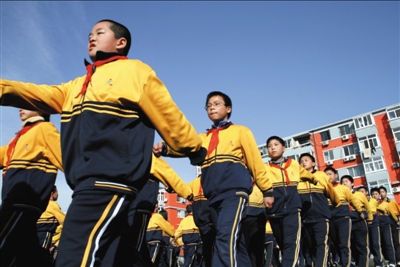 在西城區(qū)進(jìn)步小學(xué),有一項(xiàng)堅(jiān)持了多年的特殊鍛煉方式——形體健康,每天通過(guò)課前10分鐘端正坐姿、10分鐘的形體健身操和大課間廣播操結(jié)束后的10分鐘隊(duì)列訓(xùn)練,來(lái)糾正學(xué)生不良的姿勢(shì),塑造挺拔健美的形體。