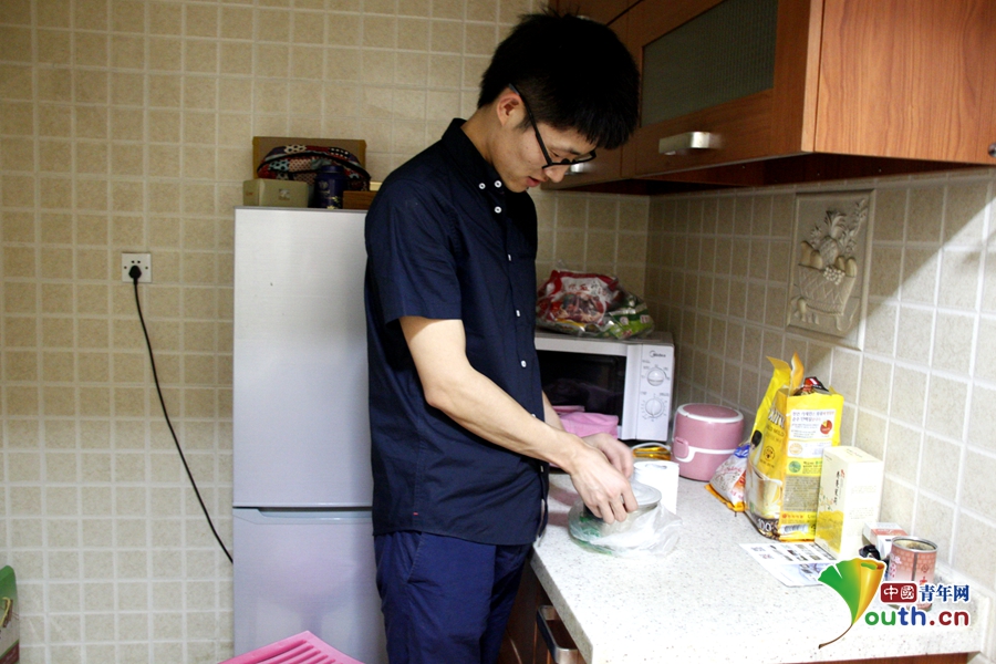 韓曉龍常常沒有時(shí)間出去吃飯,基本每天都是吃外賣。中國(guó)青年網(wǎng)記者 郭文靜 攝