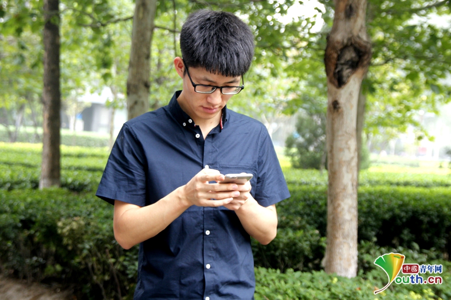 韓曉龍每天都很忙,無論什么時候都是“低頭族”。不過,他幾乎沒有時間像別的“低頭族”那樣看視頻,玩手機游戲。即使在外面談合作,也不忘處理公司的大小事宜。中國青年網記者 郭文靜 攝