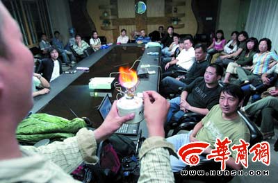 領隊向大家演示戶外煤氣爐的使用方法 記者鄧小衛(wèi) 攝