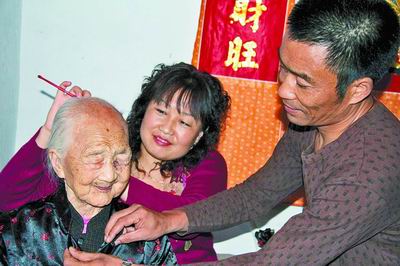 老人耳背,與她交談有些困難,一句話常常要說幾遍。但當記者大聲問她“這家人待你好不好”時,老人沒等問第二遍,便拍著胸脯大聲說:“這家人待我好著呢!我這么大年紀了,還有這樣的身體,如果家里人待我不好,我能活到今天?”