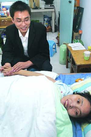 10月6日,家住鄭州西郊的岳大媽帶著禮物,登門(mén)看望馬明母子。剛進(jìn)門(mén),岳大媽就開(kāi)始心疼躺在床上的馬明母親了:“你能翻身不?躺著不動(dòng)會(huì)長(zhǎng)褥瘡的!痹来髬尳衲暌呀(jīng)71歲了,她家里有一個(gè)小時(shí)候因得了大腦炎留下后遺癥的兒子需要照顧,這些年學(xué)了不少護(hù)理知識(shí)。