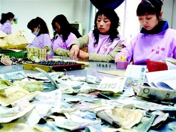 昨日下午,記者在公交公司收銀中心看到,10多名點鈔人員正在緊張清理各個公交線路收回來的大量零鈔,不到1小時,工作人員便清理出了一堆假幣、殘幣,其中還有游戲幣和冥幣。該中心主任林亞梅告訴記者,這都是一些惡意逃費的人干的,這些人在搭乘公交車的過程中,趁人多擁擠時,或?qū)垘啪沓梢粓F,或?qū)⒓賻叛杆偻度胂鋬?nèi),讓司機難以識別。更惡劣的是,個別人還使用游戲幣和冥幣充當車費投放。林主任說,在上述逃費行為中,投放游戲幣多是頑劣的學生,而投放殘幣、假幣和冥幣者則是惡意逃費者,有時一天多的時間,清理出來的冥幣多達數(shù)十元。