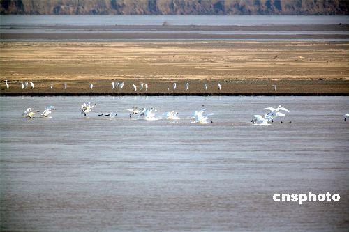 十一月十七日以來,鄭州黃河濕地保護(hù)區(qū)工作人員連續(xù)在保護(hù)區(qū)內(nèi)進(jìn)行鳥情觀察,共發(fā)現(xiàn)國家二級保護(hù)動(dòng)物大天鵝九十三只和灰鶴兩只,以及大種群分布的豆雁一千三百余只,綠頭鴨五百三十只,大白鷺三百三十二只。它們成群的在黃河上空飛翔,在灘涂草叢中覓食,場面壯觀。今年在這里停歇和越冬的鳥類比以往數(shù)量更多,種群更大。據(jù)推算,各種水鳥達(dá)到三十萬只。