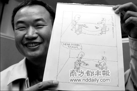 前日傍晚,杜先生拿著厚厚一包漫畫出現(xiàn)在記者面前,F(xiàn)年40歲的他在南山南頭一家公司打工!拔覄倧谋O(jiān)獄出來(lái)。”他毫不隱瞞自己不光彩的經(jīng)歷。2000年4月,他在深圳開(kāi)設(shè)的貿(mào)易公司因牽涉到一樁合同詐騙案件,他被法院判處了10年有期徒刑,其后被送到廣東韶關(guān)服刑。