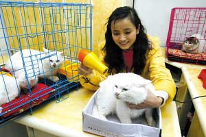 渝中區(qū)一名在證券公司上班的女白領,辭掉3000元月薪后回家租房伺候收養(yǎng)來的19只流浪貓狗,平時靠在網(wǎng)上賣貓糧狗糧和給別人洗貓狗的收入來維持開支。昨天,當石橋鋪一家證券公司以4000元的月薪請她“出山”時遭其拒絕。