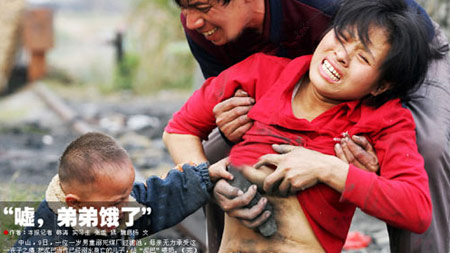 “噓!別鬧,弟弟餓了,媽媽要給弟弟喂奶”,康小英一邊對(duì)站在旁邊哭泣的女兒說(shuō)著,一邊拿起一塊泥巴,把泥巴當(dāng)作已經(jīng)溺水身亡的兒子,給“泥巴”喂奶。