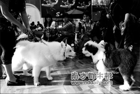 現(xiàn)場一下子要請來幾十名狗狗,真不容易。狗主們各顯神通,有的拿包包當工具,有的直接抱進來的,訓練有素的狗狗則直接跟在主人后面閃亮登場了。它們在現(xiàn)場看到這么多同類,都好奇地互相打量,小心翼翼地上前用鼻子嗅嗅,算是問個安了。